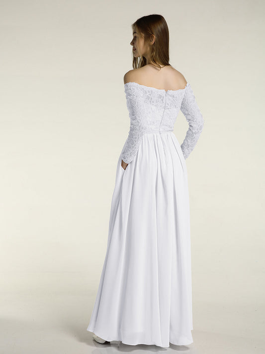 Babaroni MeilaniVestidos de encaje y chiffon con mangas largas y bolsillos Blanco
