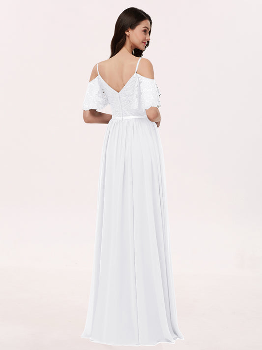 Babaroni CherryVestidos largos de encaje y chiffon con tirantes finos Blanco