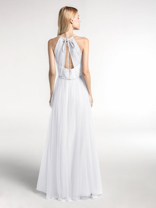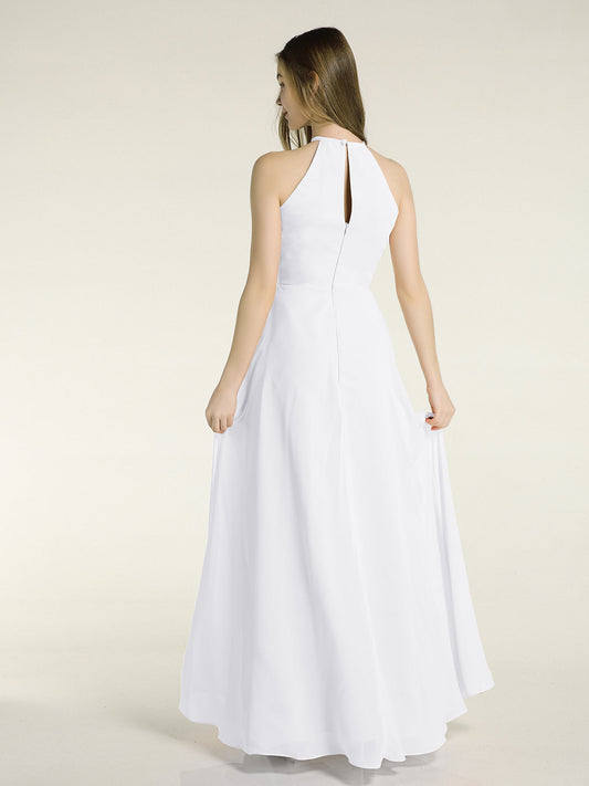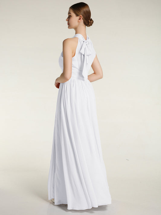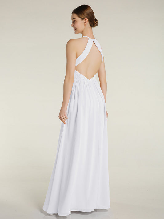 Babaroni TheraVestidos largos de dama de honor estilo halter de chiffon con espalda baja Blanco