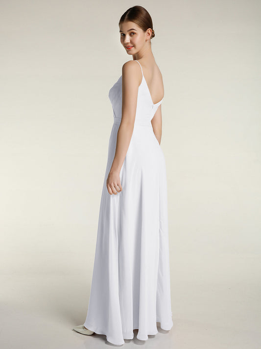 Babaroni NatalieVestido maxi simple de chiffon con escote en V y tirantes finos Blanco