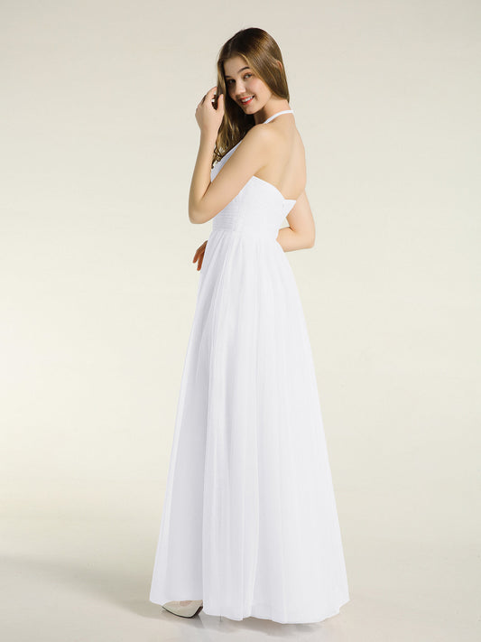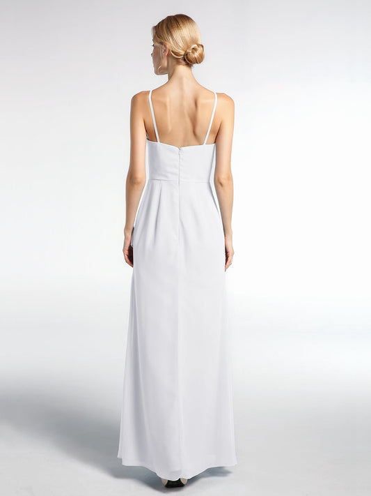 Babaroni MariaVestidos largos de chiffon de cuello en Y para damas de honor Blanco