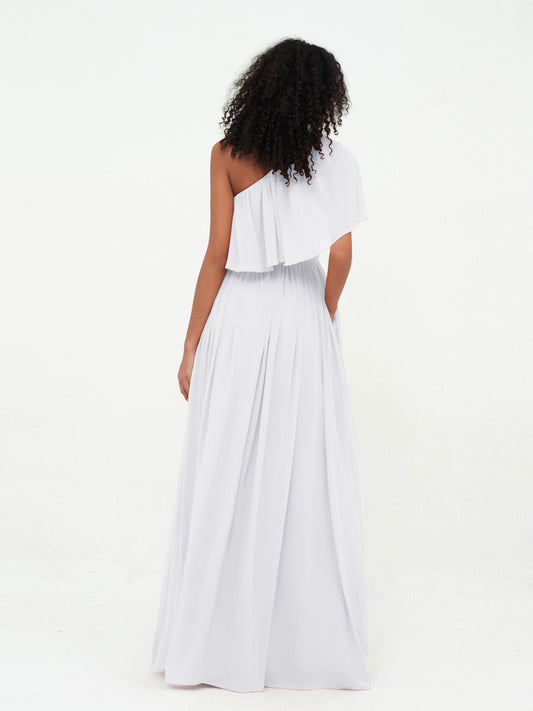 Babaroni MildredVestidos largos de chiffon de un hombro con bolsillos Blanco