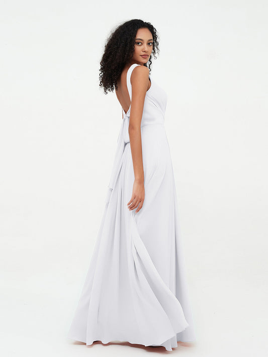 Babaroni TeaganVestidos de dama de honor de chiffon con tirantes finos y escote en V Blanco