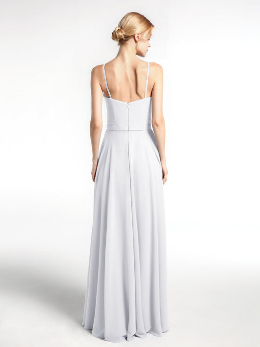 Babaroni EllaVestido sencillo de chiffon con tirantes finos y escote en forma de muesca Blanco