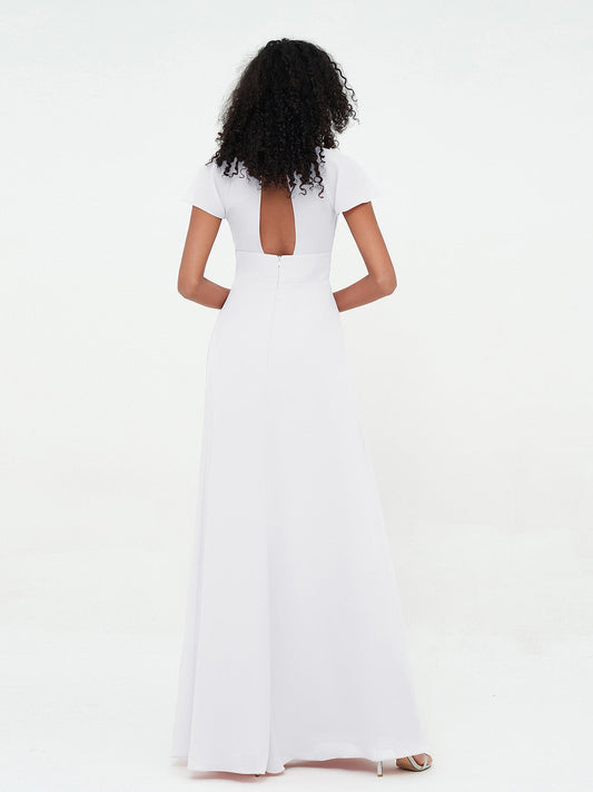 Babaroni ShirleyShirley Escote En V Gasa Corto Vestidos De Dama De Honor Blanco
