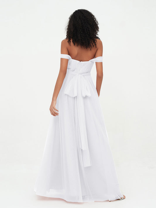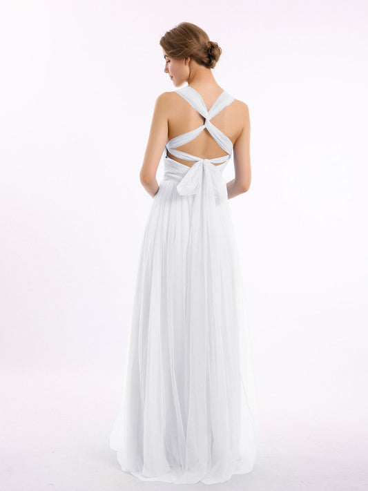 Babaroni EvelynVestidos de tul con espalda convertible y largo hasta el suelo Blanco
