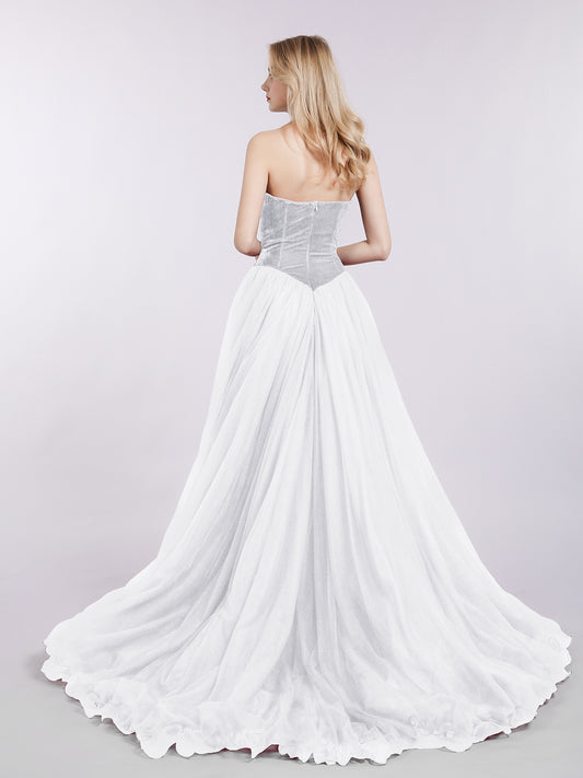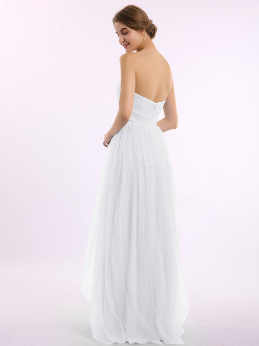 Babaroni ViolaVestidos largos de dama de honor sin tirantes con escote en corazón y falda de tul Blanco