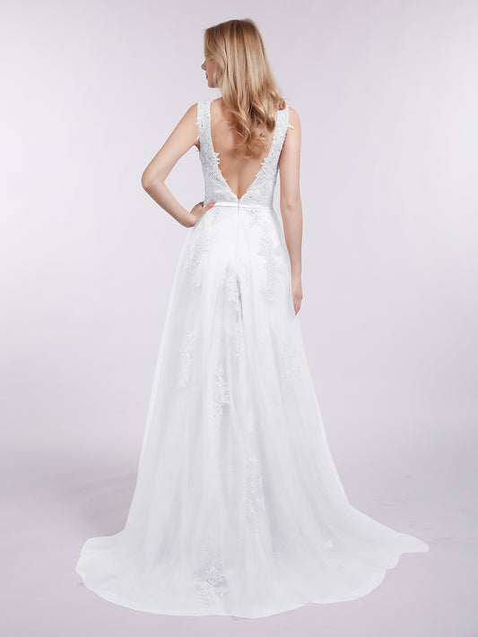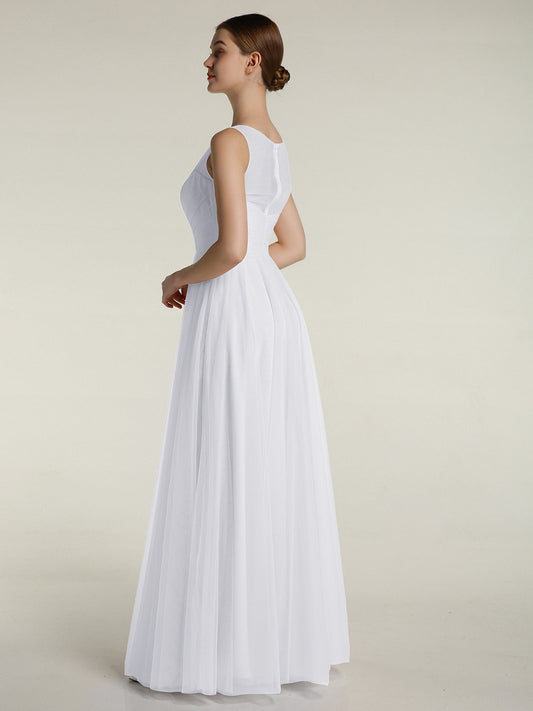 Babaroni KatherineVestidos máximos de tul estilo A-line con escote en V profundo en la espalda Blanco
