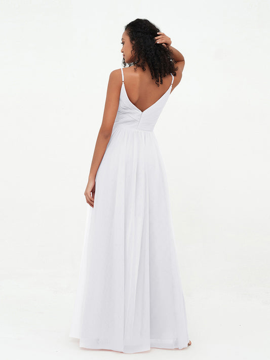 Babaroni MarjorieVestidos largos de tul plisado con tirantes spaghetti Blanco