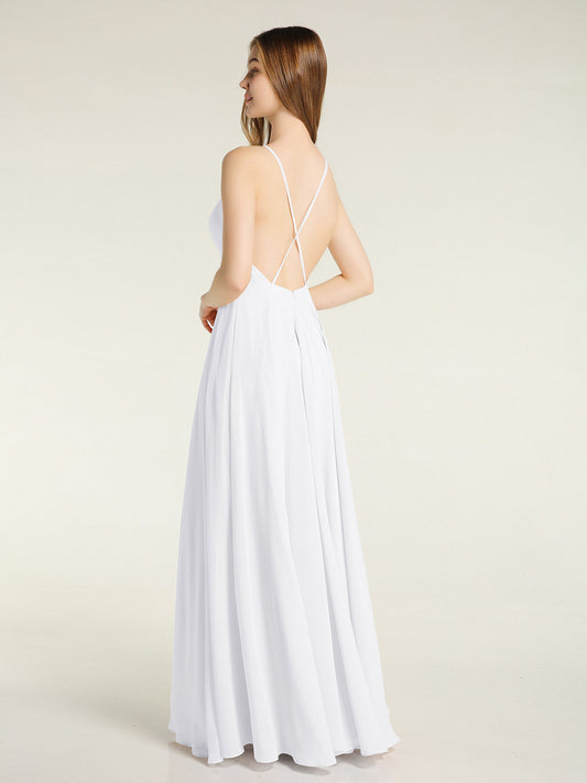 Babaroni MaudSencillos vestidos largos de chiffon con tirantes finos y abertura Blanco