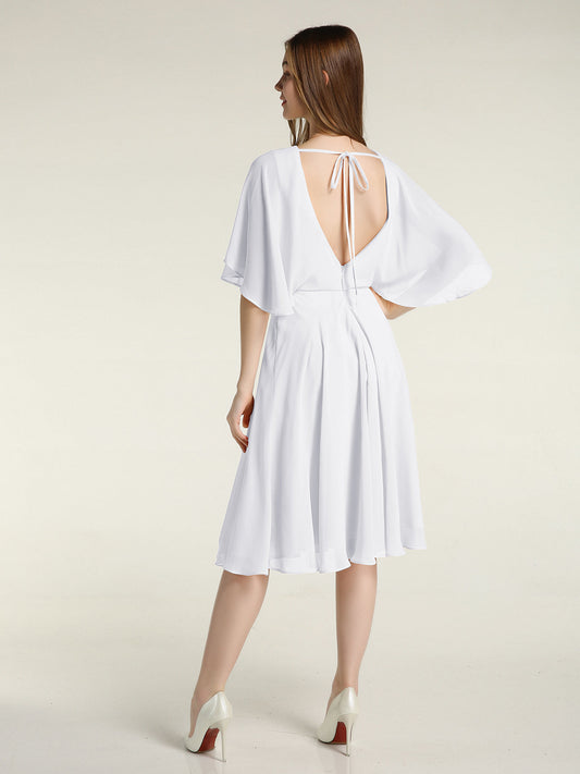 Babaroni SelenaVestidos cortos de chiffon con escote tipo scoop y mangas de volantes Blanco