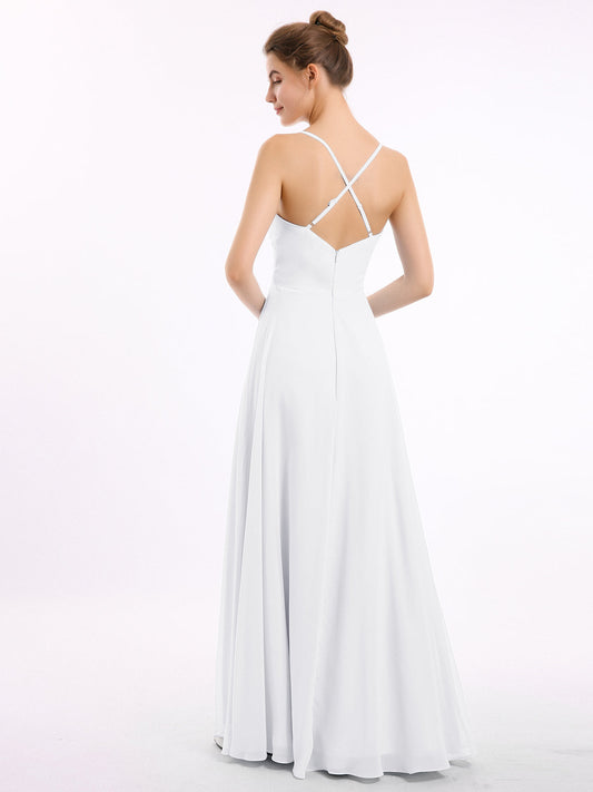 Babaroni VitaVestido de dama de honor de chiffon con escote en V y espalda descubierta Blanco