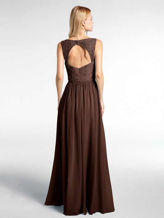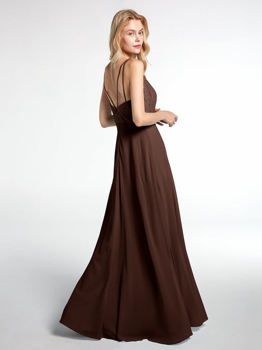 Babaroni LaraineVestido maxi con cuerpo de encaje y falda de chiffon con escote en V Chocolate