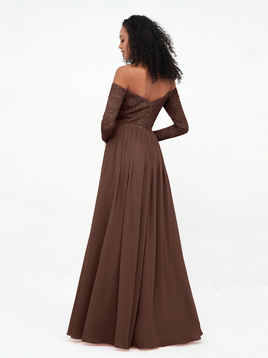 Babaroni JoannaVestidos largos de encaje con mangas largas y hombros descubiertos Chocolate