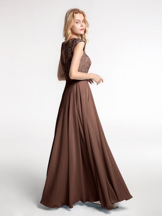 Babaroni PearlPearl Largos Vestidos De Dama De Honor Con Mangas De La Tapa Chocolate