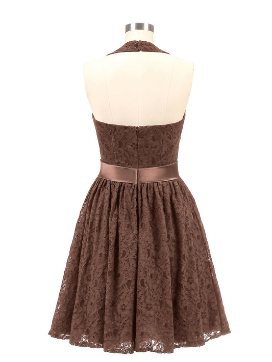 Babaroni FrancesVestidos de halter con top de encaje y espalda descubierta de gasa Chocolate