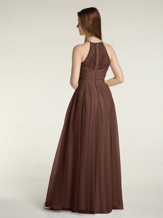 Babaroni TinaVestidos largos con cuerpo de encaje y falda de tul Chocolate