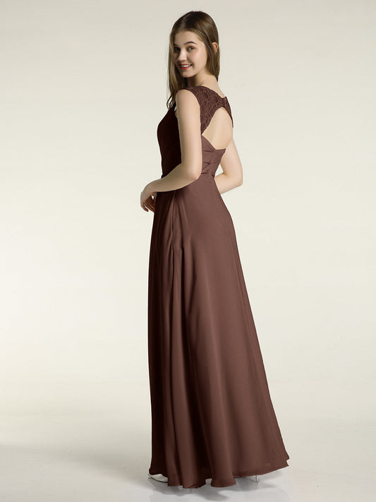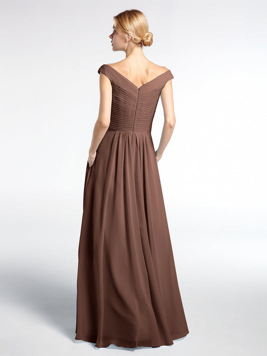 Babaroni PagVestidos estilo A-line de chiffon con escote en V y abertura Chocolate