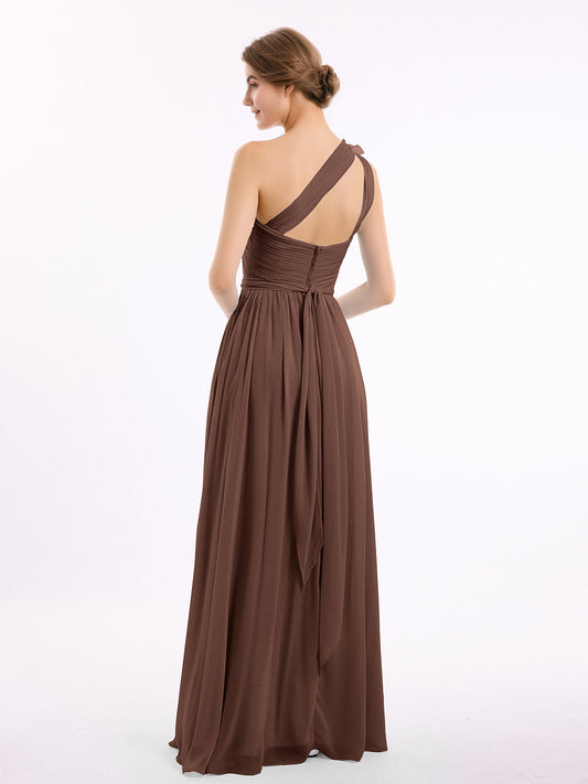 Babaroni XantheVestidos máximos de chiffon de un solo hombro con abertura Chocolate