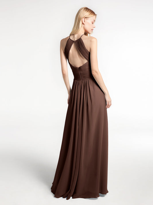 Babaroni VictoriaVestido de chiffon con cuello halter y abertura en forma de cerradura con bolsillos Chocolate