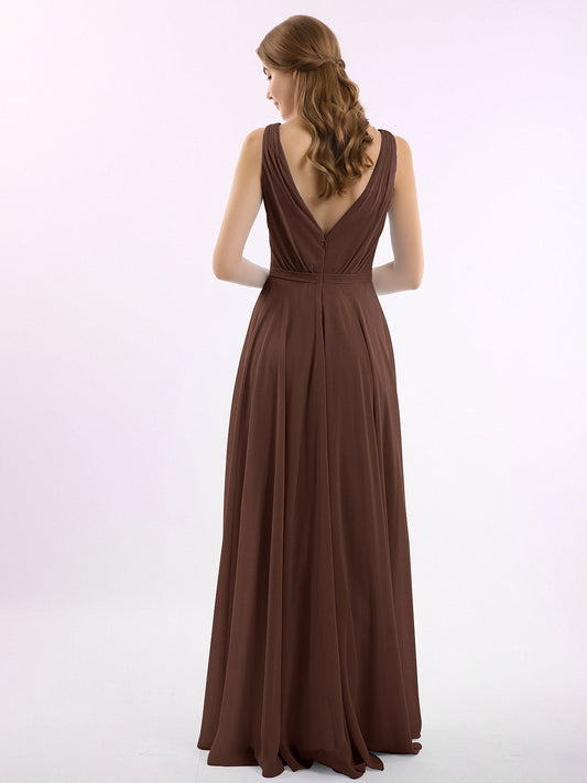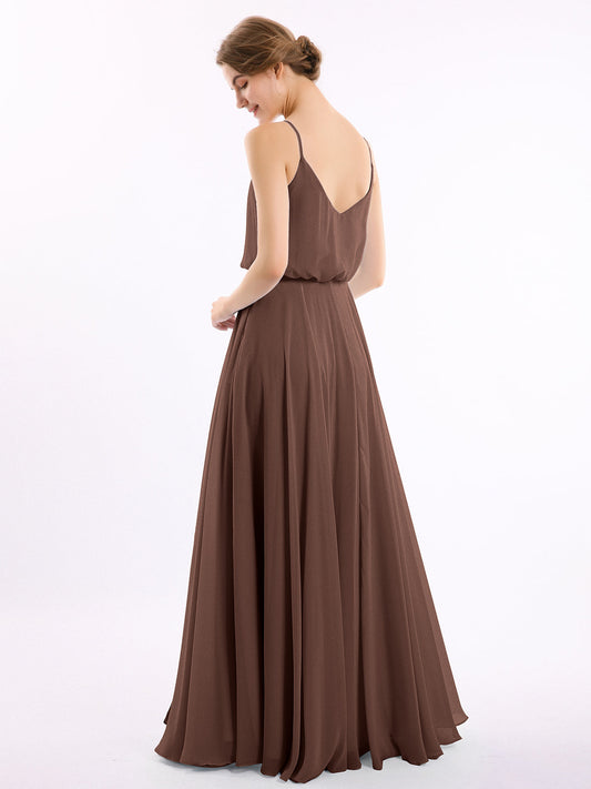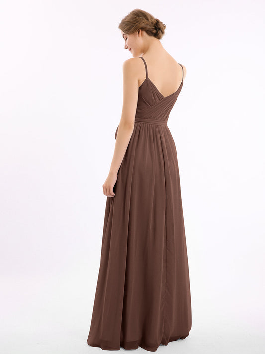Babaroni VickyVestidos de dama de honor de chiffon con escote en V y tirantes finos Chocolate