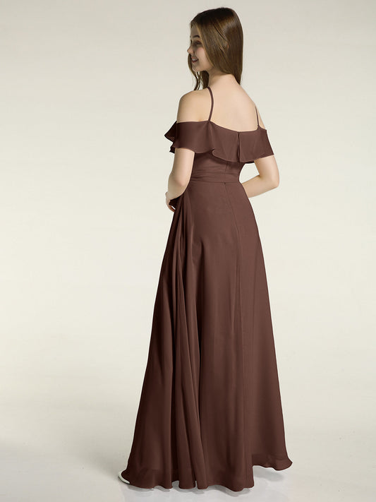 Babaroni LesleyVestidos largos de chiffon estilo halter con doble tirante Chocolate