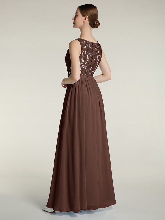 Babaroni MariaVestidos largos de chiffon de cuello en Y para damas de honor Chocolate