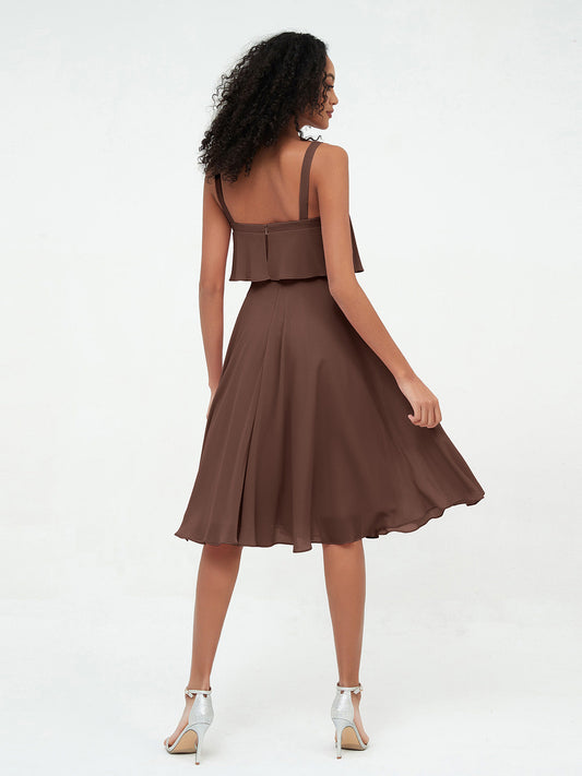 Babaroni AnnaVestidos cortos de chiffon con tirantes para la dama de honor con falda redonda Chocolate