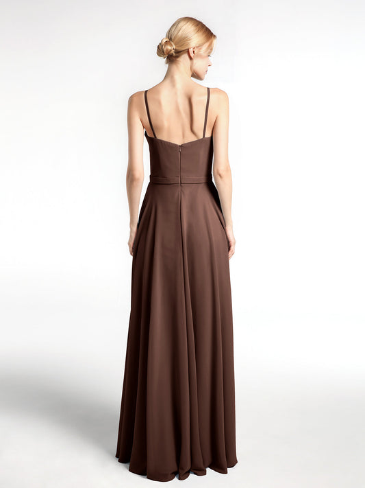 Babaroni EllaVestido sencillo de chiffon con tirantes finos y escote en forma de muesca Chocolate