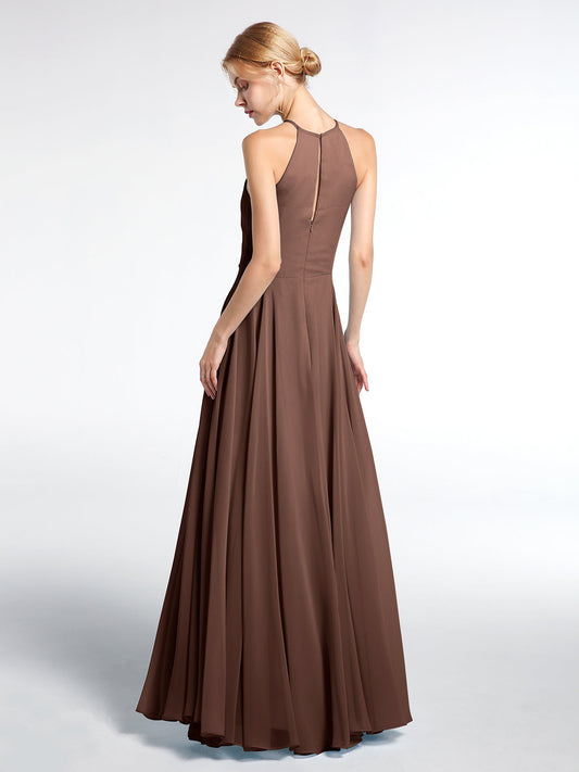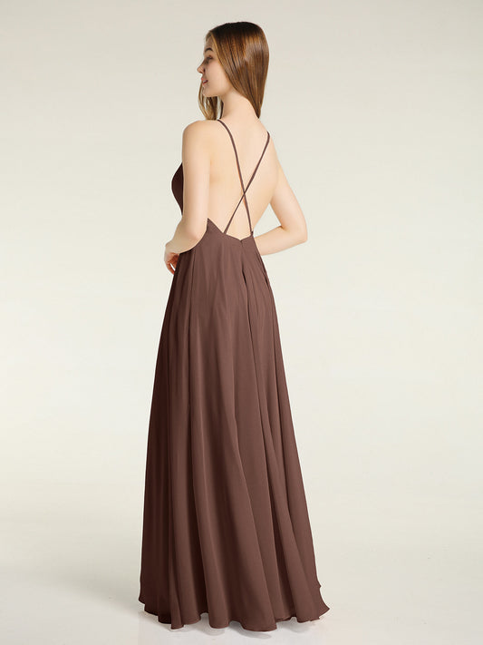 Babaroni SandraVestidos sencillos de dama de honor de chiffon con espalda baja Chocolate