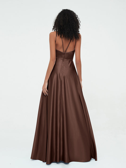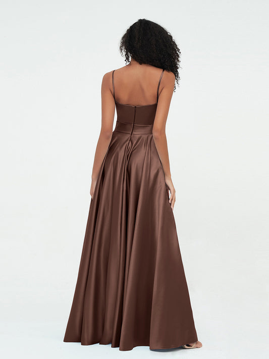Babaroni MyrnaVestidos máximos de satén estilo A-line con tirantes spaghetti Chocolate