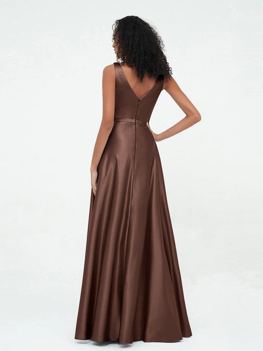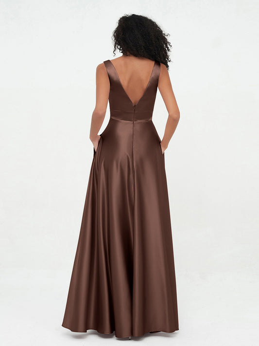 Babaroni RaeVestidos máximos de satén estilo A-line con escote en V y bolsillos Chocolate