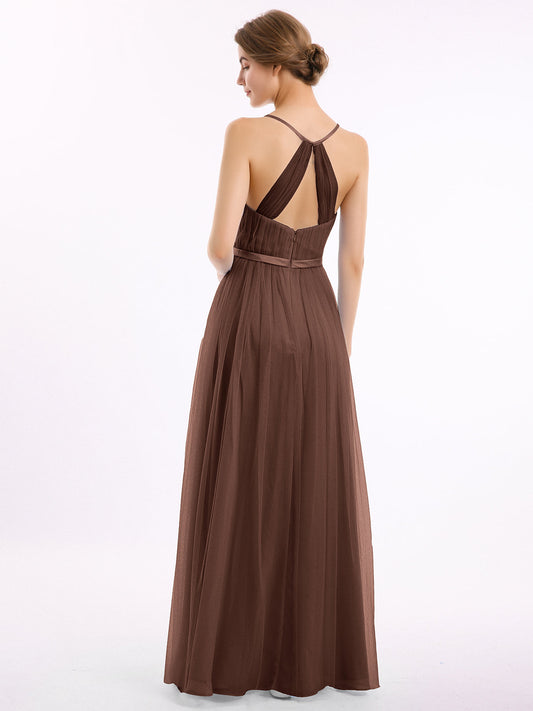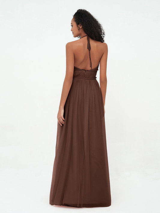 Vestidos de tul con espalda convertible y largo hasta el suelo Chocolate