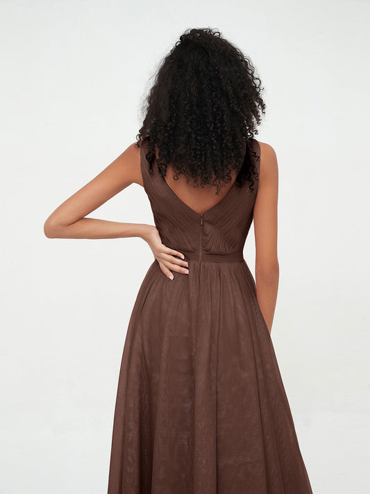 Vestidos máximos de tul estilo A-line con escote en V profundo en la espalda Chocolate