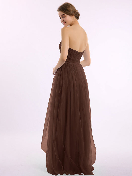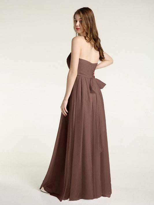 Vestidos de tul sin tirantes con escote en corazón y lazo Chocolate