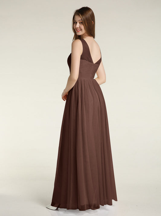 Vestidos largos de tul con escote en V ilusión Chocolate
