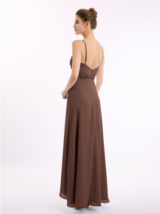 Babaroni HannahHannah Escote En V Saten Alto Bajo Vestidos De Dama De Honor Chocolate
