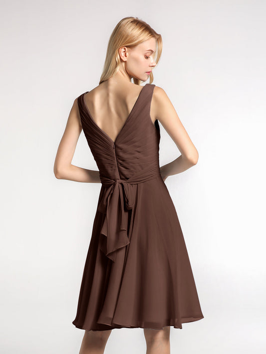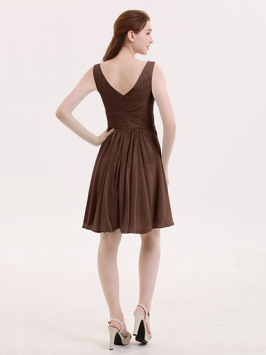 Babaroni ShirleyShirley Escote En V Gasa Corto Vestidos De Dama De Honor Chocolate