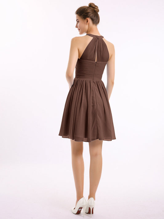 Babaroni SylviaVestidos cortos de dama de honor de chiffon estilo halter Chocolate