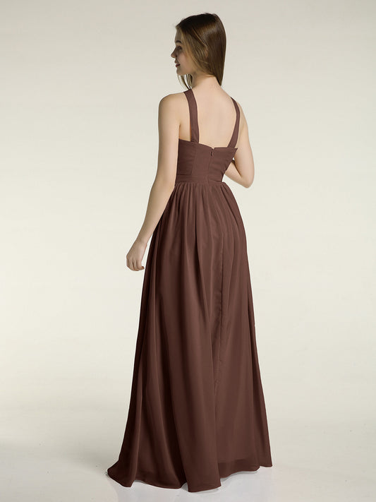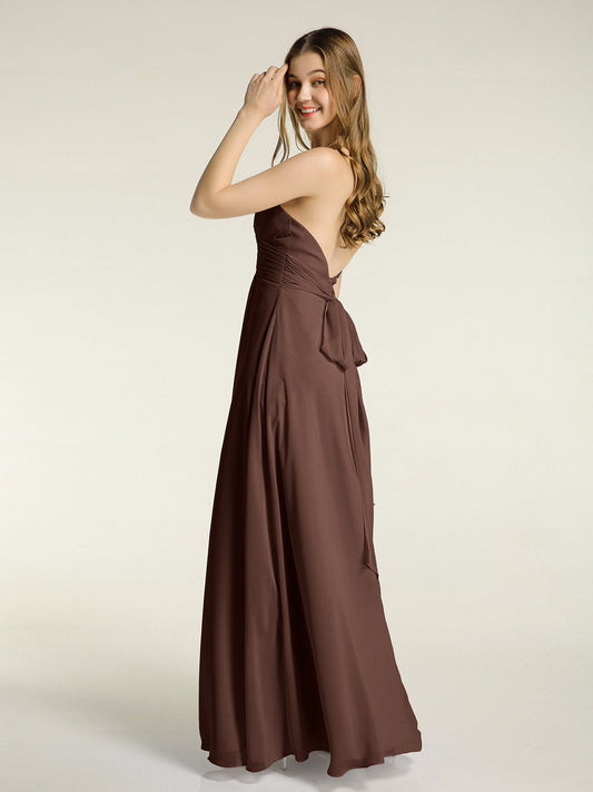 Babaroni MandyVestidos largos de chiffon estilo halter para damas de honor Chocolate
