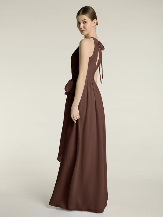 Babaroni JaneVestidos largos de chiffon estilo halter con lazo Chocolate
