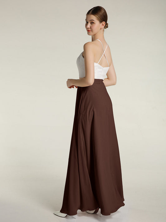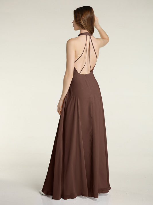 Babaroni AmyVestidos largos de dama de honor de chiffon con tirantes de cuello halter Chocolate