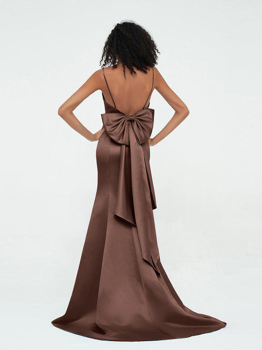 Babaroni MuseVestidos sirena de satén con tirantes spaghetti Chocolate