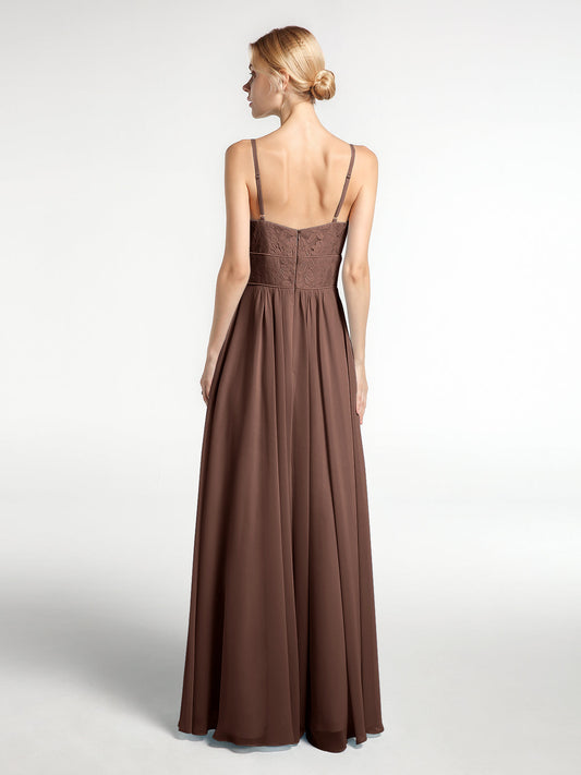 Babaroni FeliciaVestidos largos de chiffon con tirantes finos y escote en corazón Chocolate
