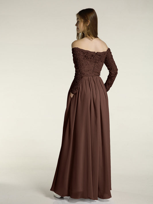 Babaroni MeilaniVestidos de encaje y chiffon con mangas largas y bolsillos Chocolate