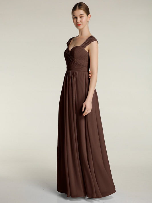 Babaroni HelenVestidos de chiffon con escote en corazón y mangas cap de encaje Chocolate