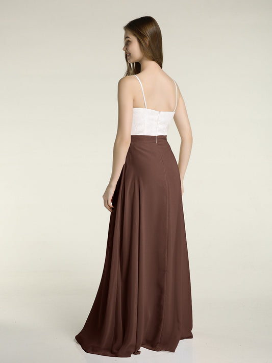 Babaroni MaudSencillos vestidos largos de chiffon con tirantes finos y abertura Chocolate