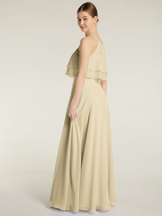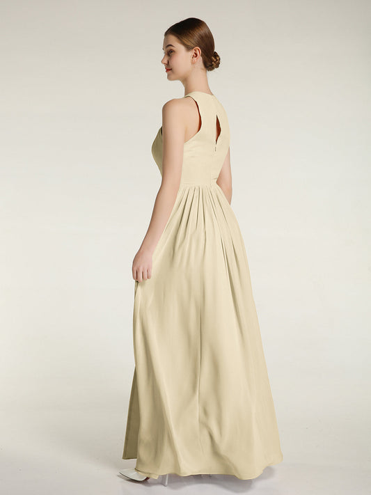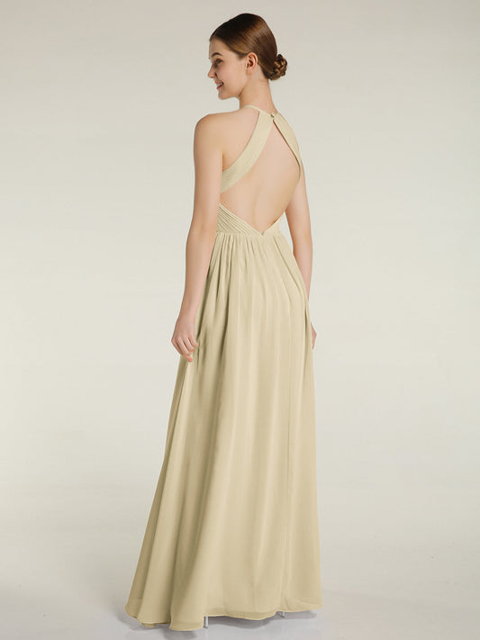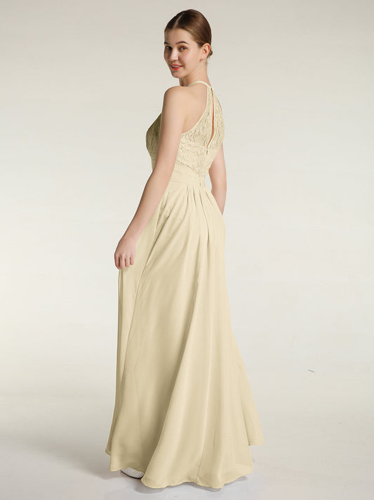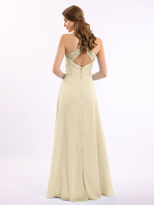 Babaroni AmandaVestidos largos de chiffon y encaje estilo halter Champán