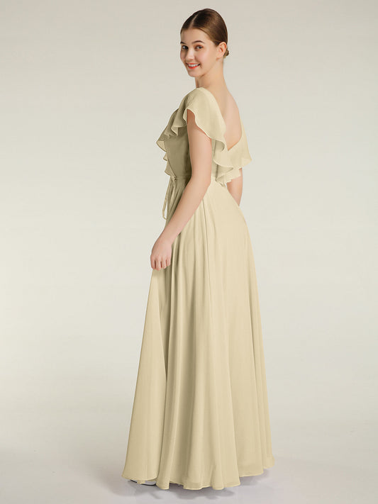 Babaroni CarolVestidos sencillos de chiffon con escote en V Champán