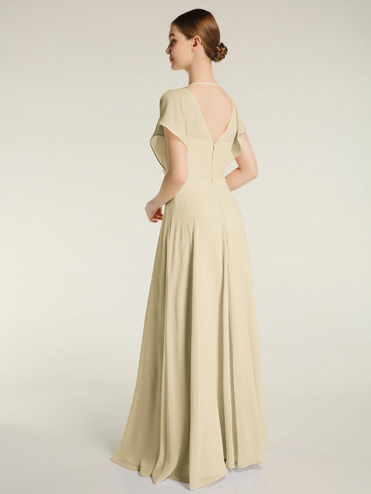 Babaroni AngelVestidos de chiffon con escote en V y mangas cap Champán